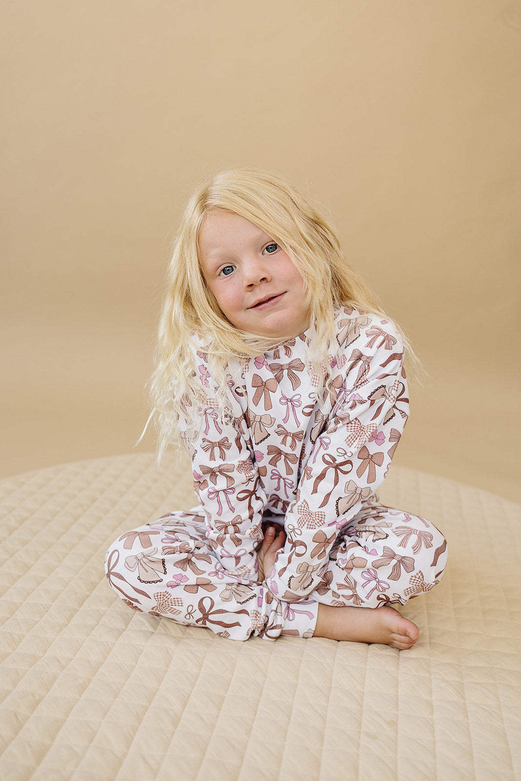 The Mocha Bows | Jogger Set is crafted from soft, breathable cotton, combining everyday comfort with effortless style. Featuring a relaxed fit, this set is perfect for playdates, lounging, and casual outings. The warm mocha tone reflects the cozy feel of fall, while the bow detail adds a sweet and stylish touch. A versatile staple that feels as good as it looks, ideal for autumn days and seasonal memories.