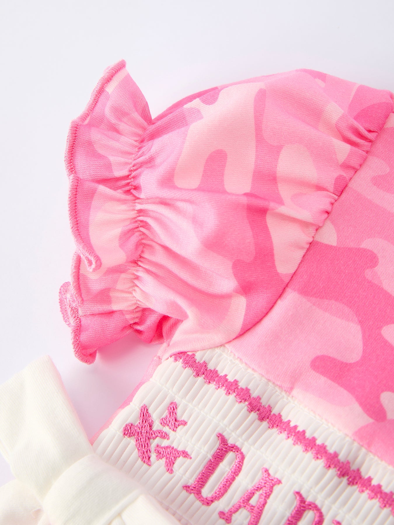 Camouflage "DADDY'S GIRL" Smocking Embroidery Girls Romper
