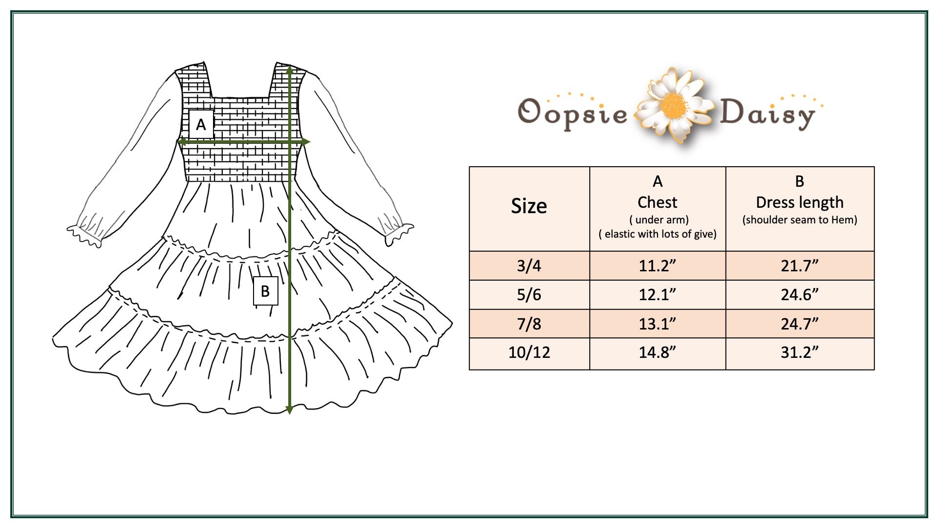 Marie Nicole Clothing designs timeless, comfortable styles that let kids move, play, and shine. Use these size charts to find your child’s ideal fit. When in doubt or between sizes, we recommend sizing up for extra comfort and longer wear.