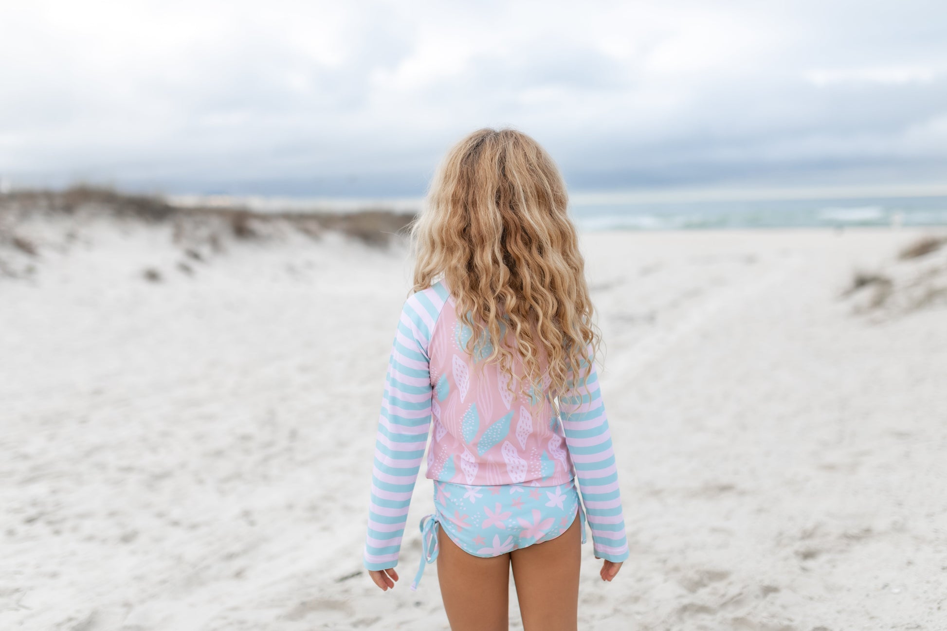 Emily Mint Floral Long Sleeve Rash Guard Swimsuit