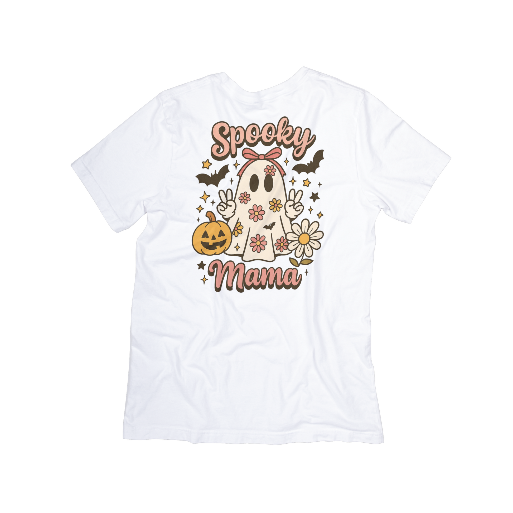 Spooky Mama Ghost Tee – Boho Rose Gold Halloween Shirt for Women
