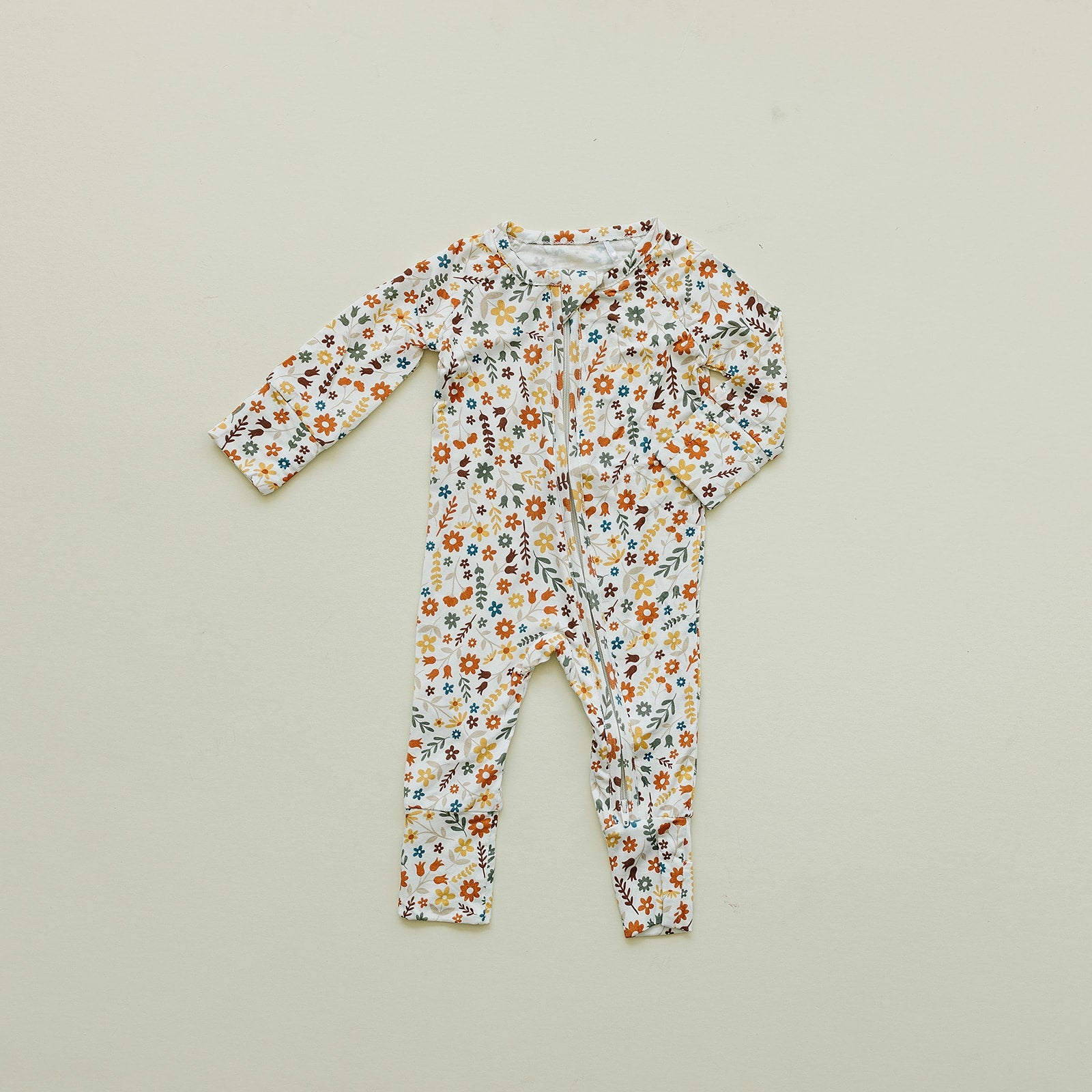 Fall flowers to make your little one smile! Super-soft and stretchy, featuring fold-over mittens and footies up to 12-18M. Diaper changes are a breeze with the two-way zipper. Your little one will stay cozy and comfortable, whether it's playtime, nap time, or cuddle time. Matching headband available!