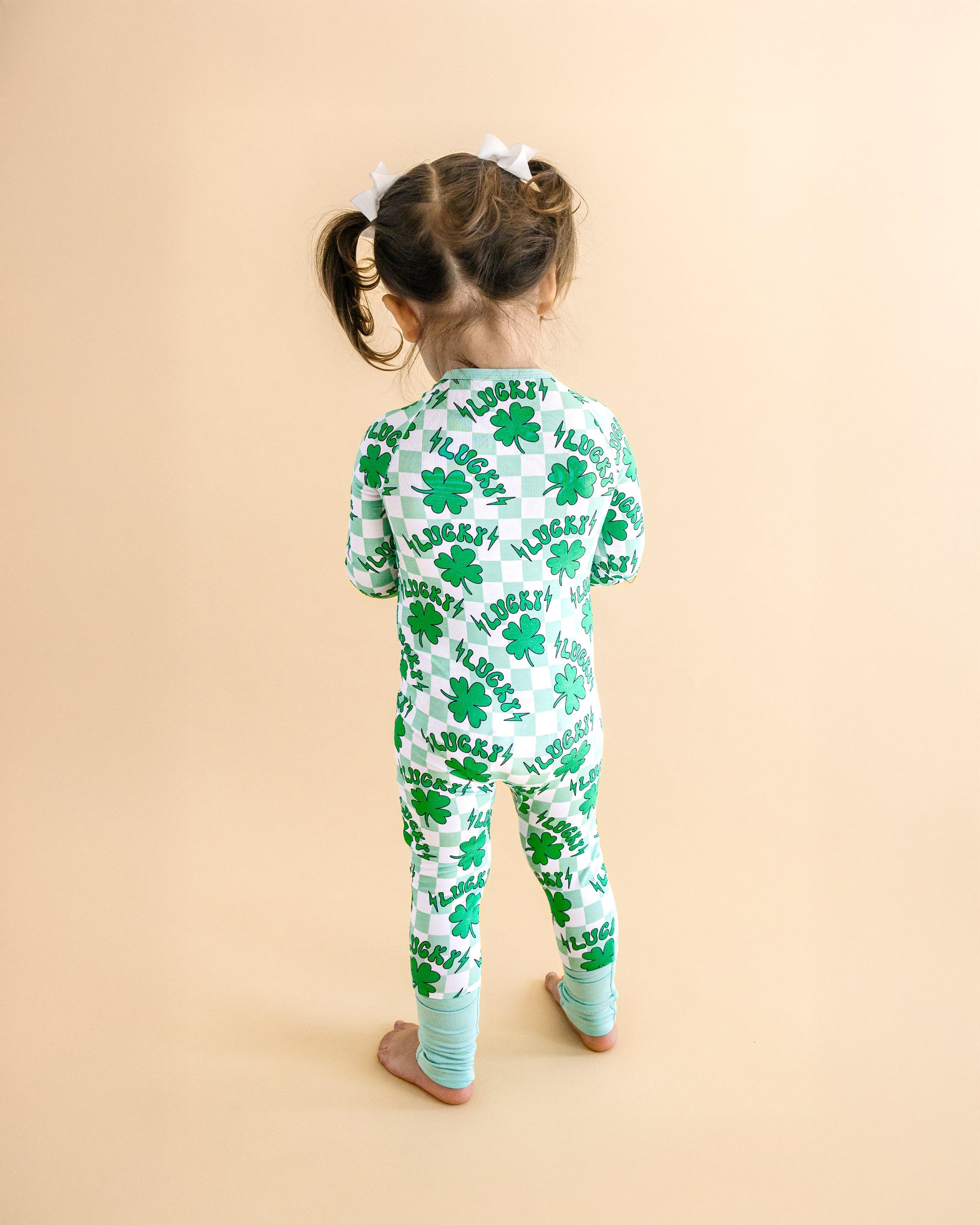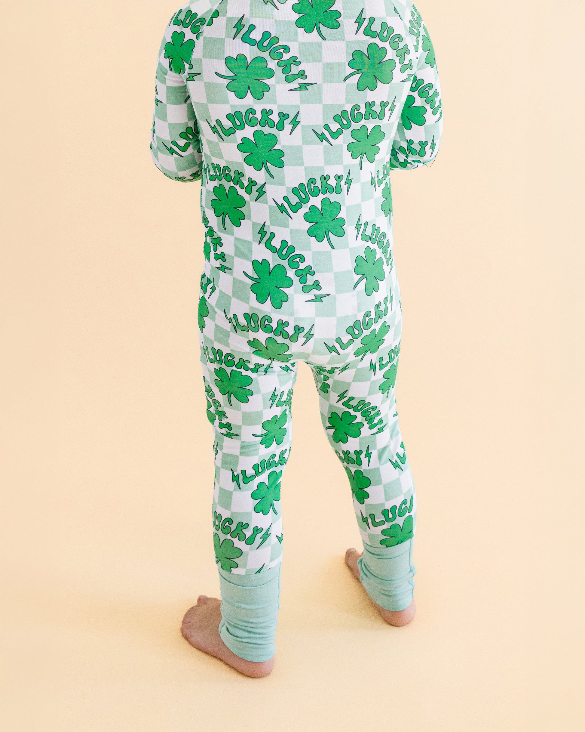 Lucky never looked so cute! Super-soft and stretchy, featuring fold-over mittens and footies up to 18-24M. Diaper changes are a breeze with the two-way zipper. Your little one will stay cozy and comfortable, whether it's playtime, nap time, or cuddle time.