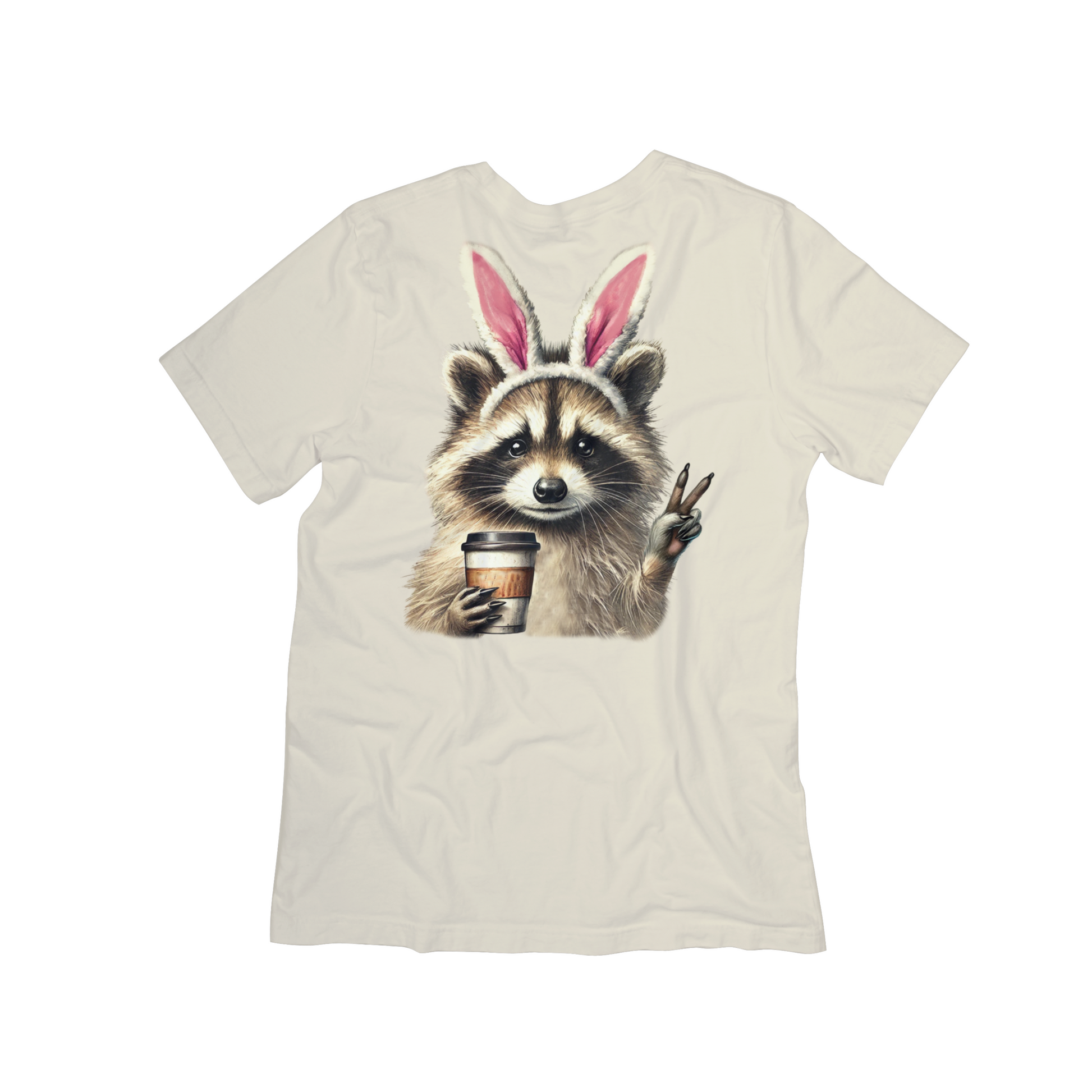 Start your day with coffee, confidence, and a little mischief! ☕🐾 This fun and quirky tee features an adorable raccoon rocking pink bunny ears, a steaming cup of coffee in one hand, and a peace sign in the other. Whether you're a caffeine queen, a raccoon lover, or just appreciate a good dose of attitude, this shirt is a must-have!