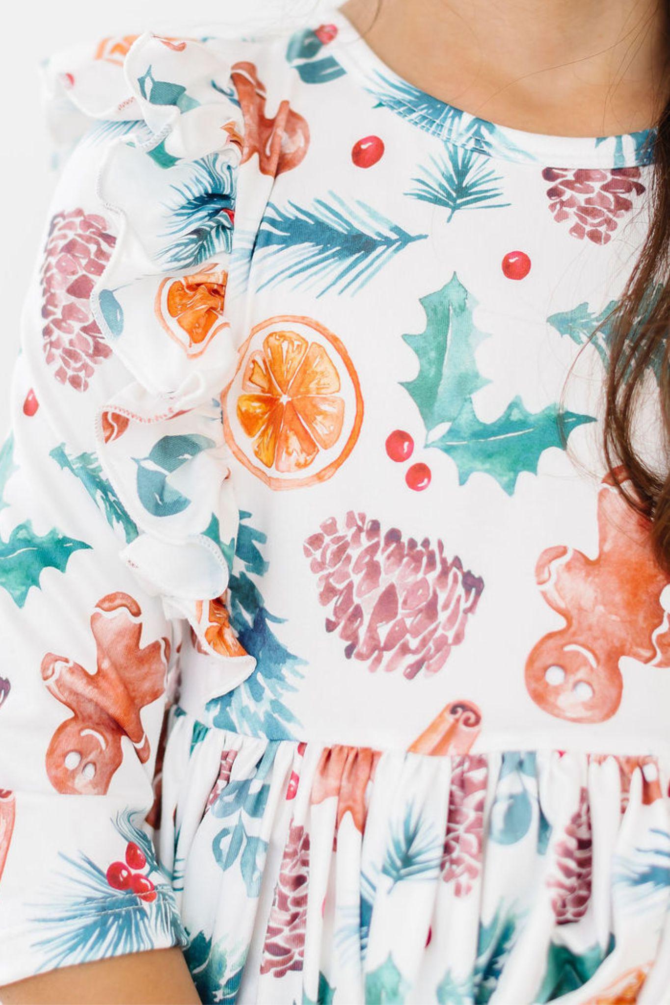 Classic Christmas 3/4 Sleeve Ruffle Twirl Dress