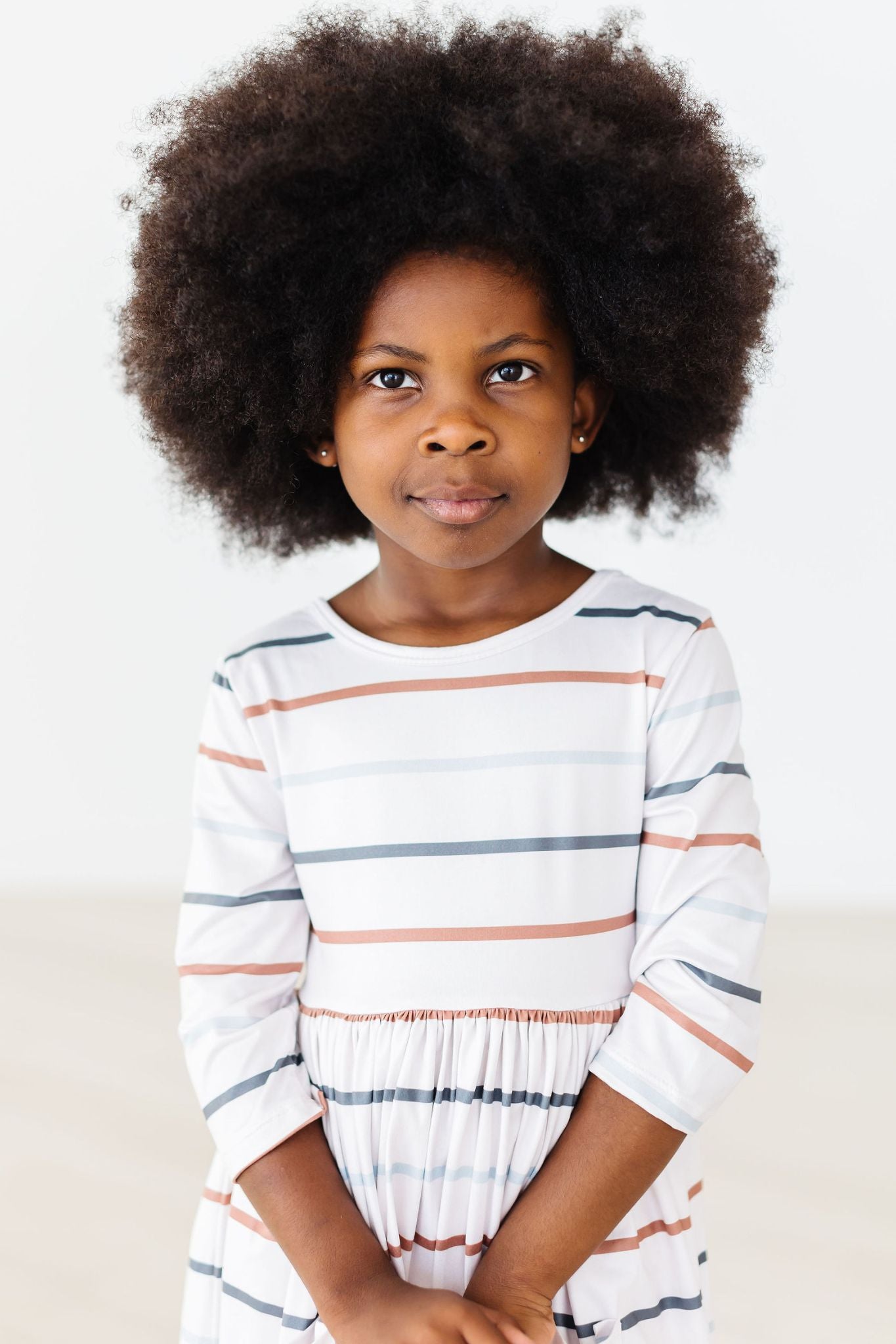 Fall Stripes 3/4 Sleeve Pocket Twirl Dress