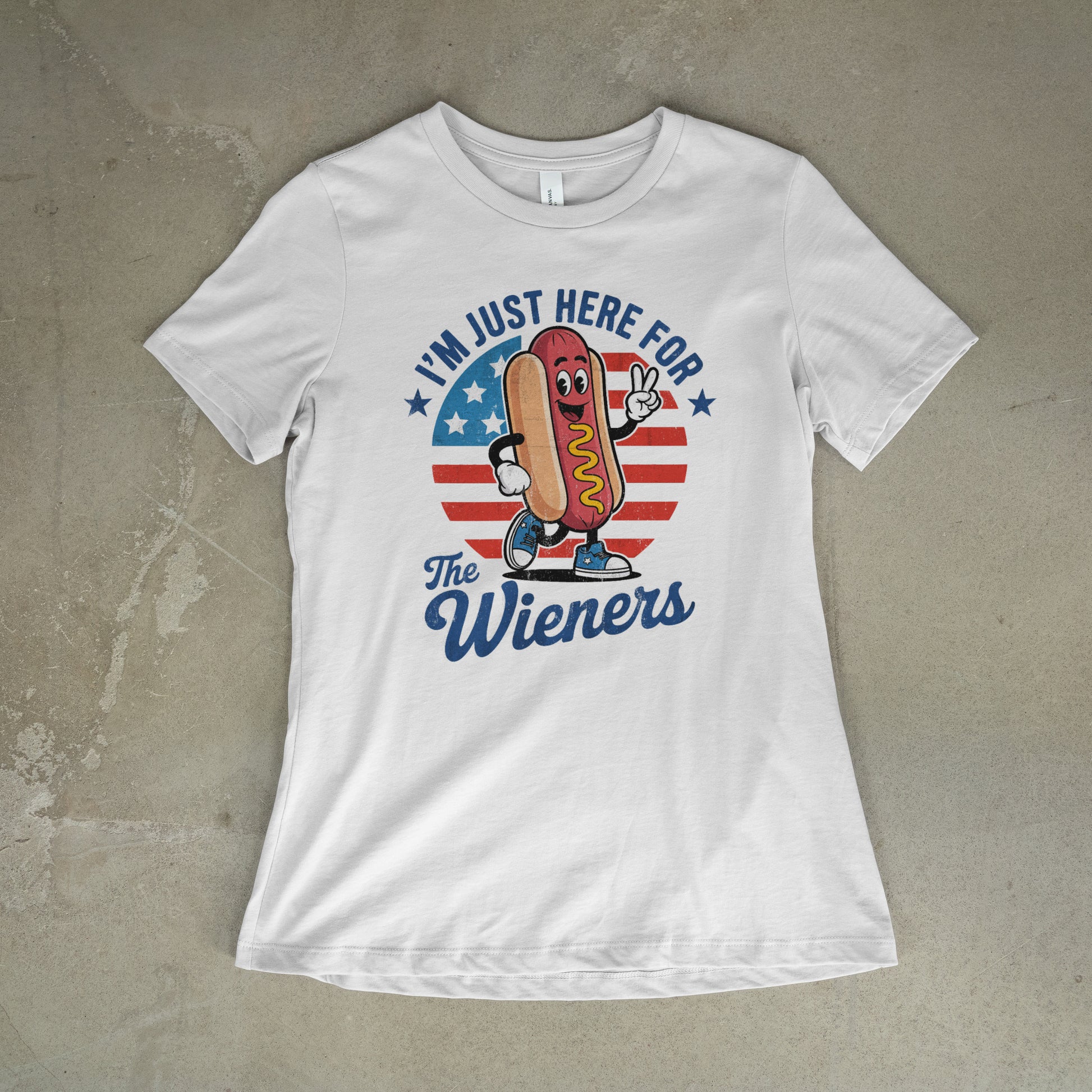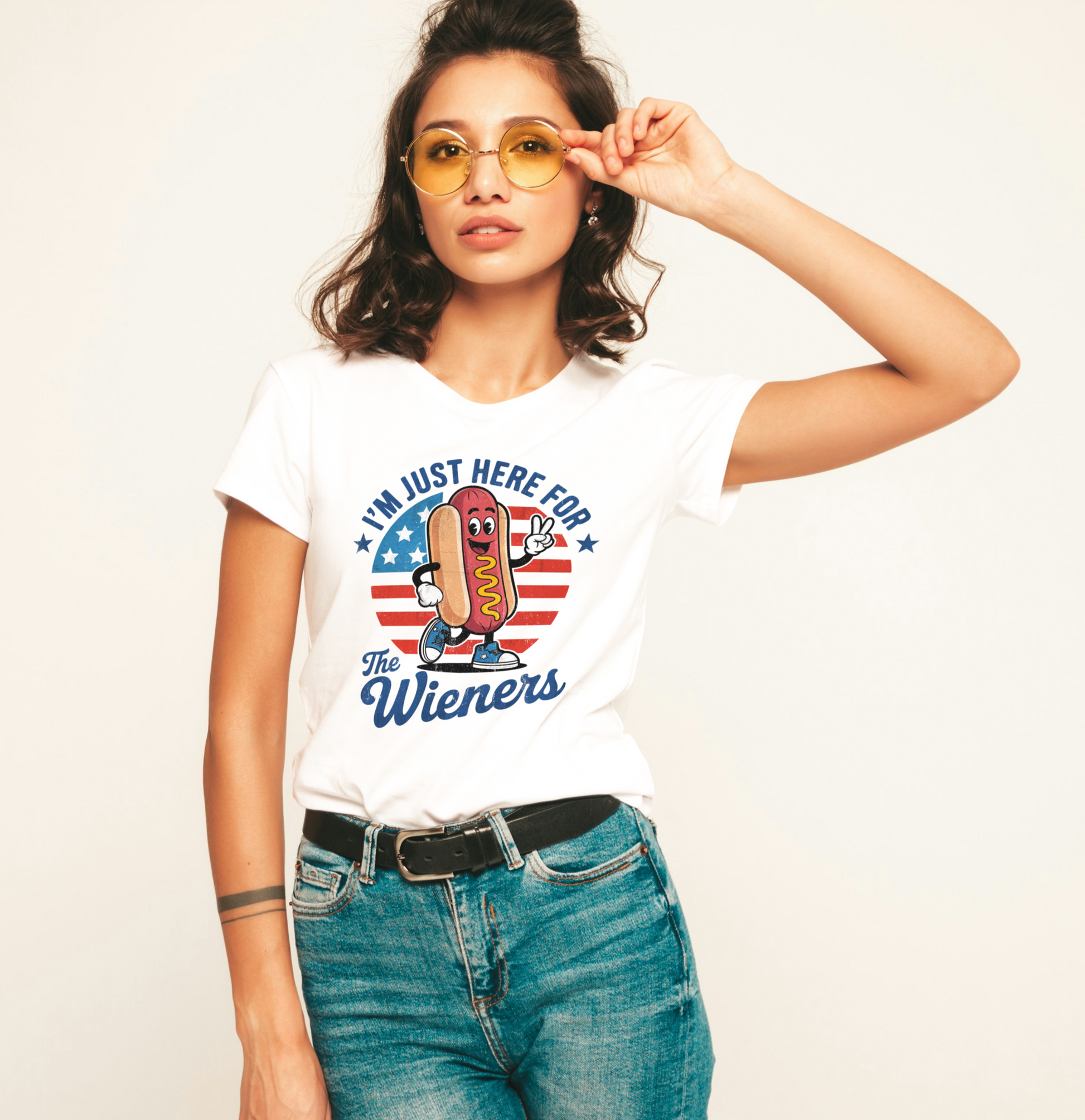 I’m Just Here for the Wieners 4th of July Graphic Tee – Funny Patriotic Hot Dog Shirt