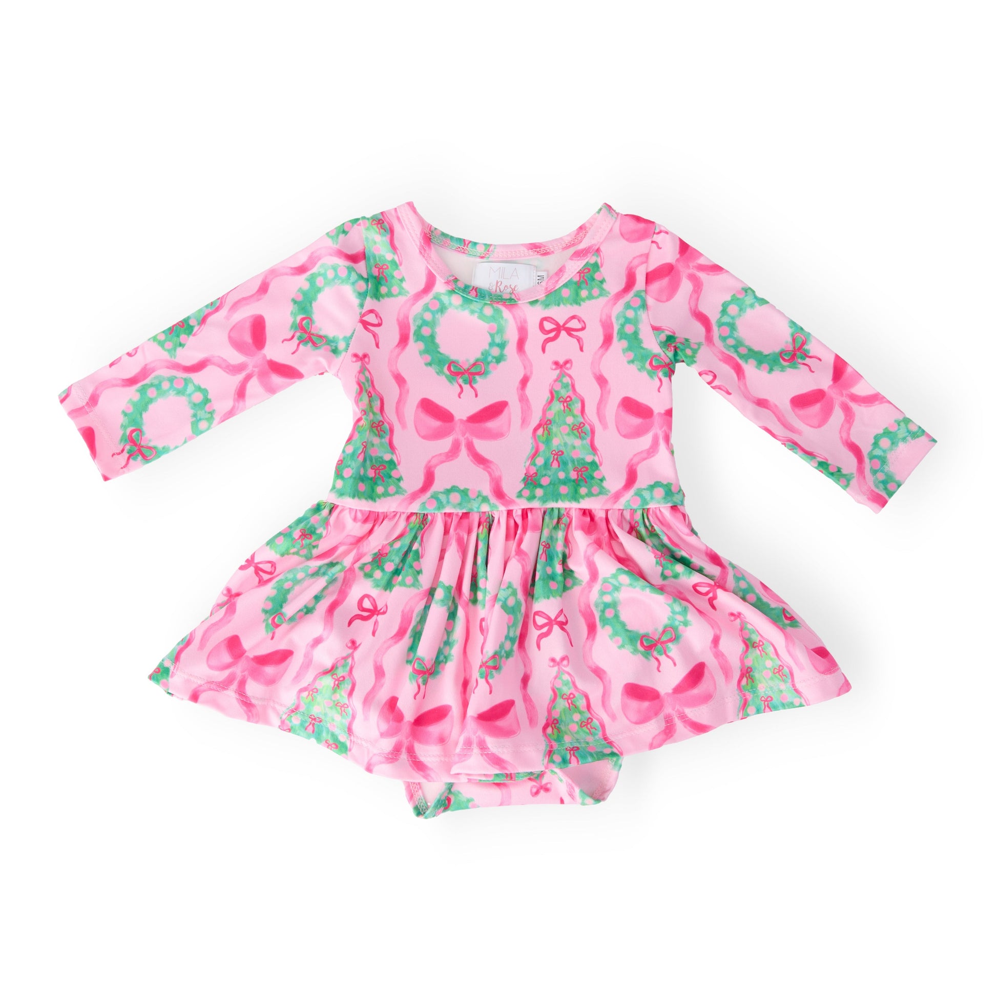 Our twirl bodysuit is the newest addition to our twirl line. Perfect for babies! Snap closure for diaper changes AND no need for bloomers. Matching Twirl Dress available for big sis, cousin, or BFF.