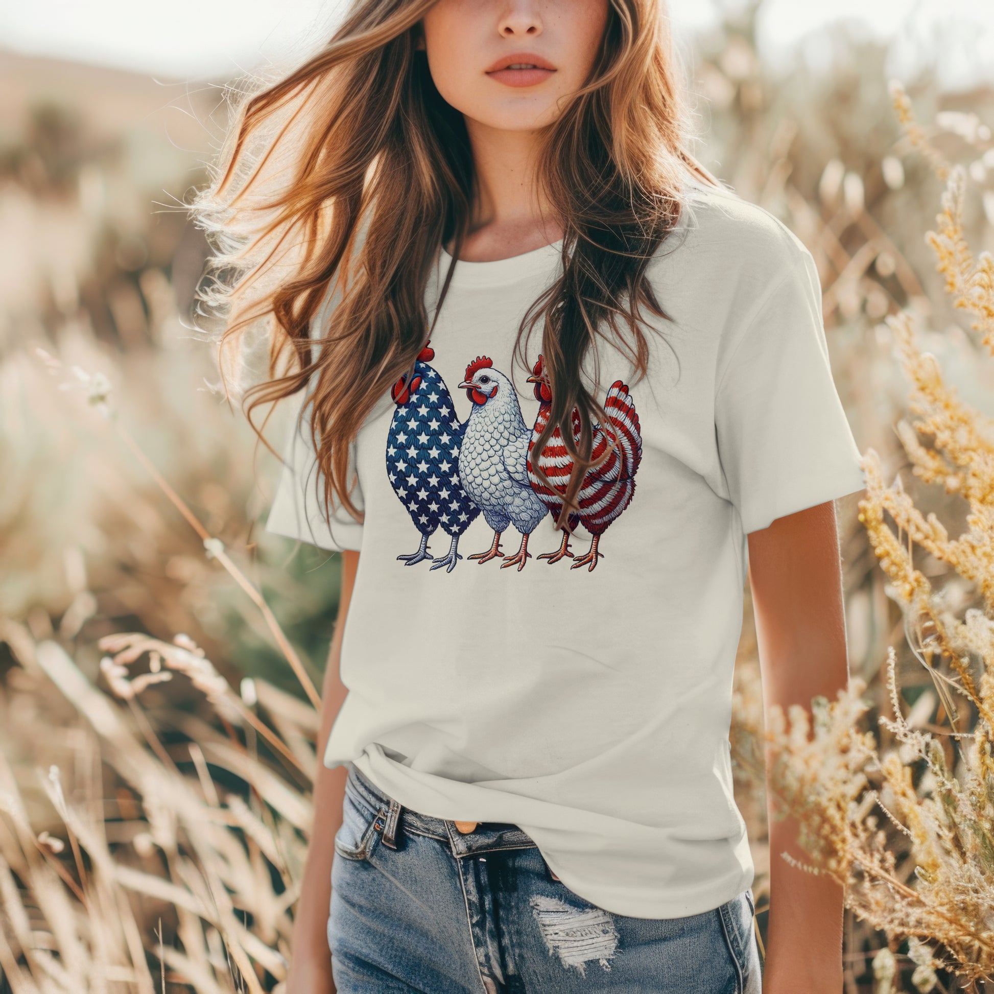 Patriotic Chicken Trio Tee – Red, White & Cluckin' Cute