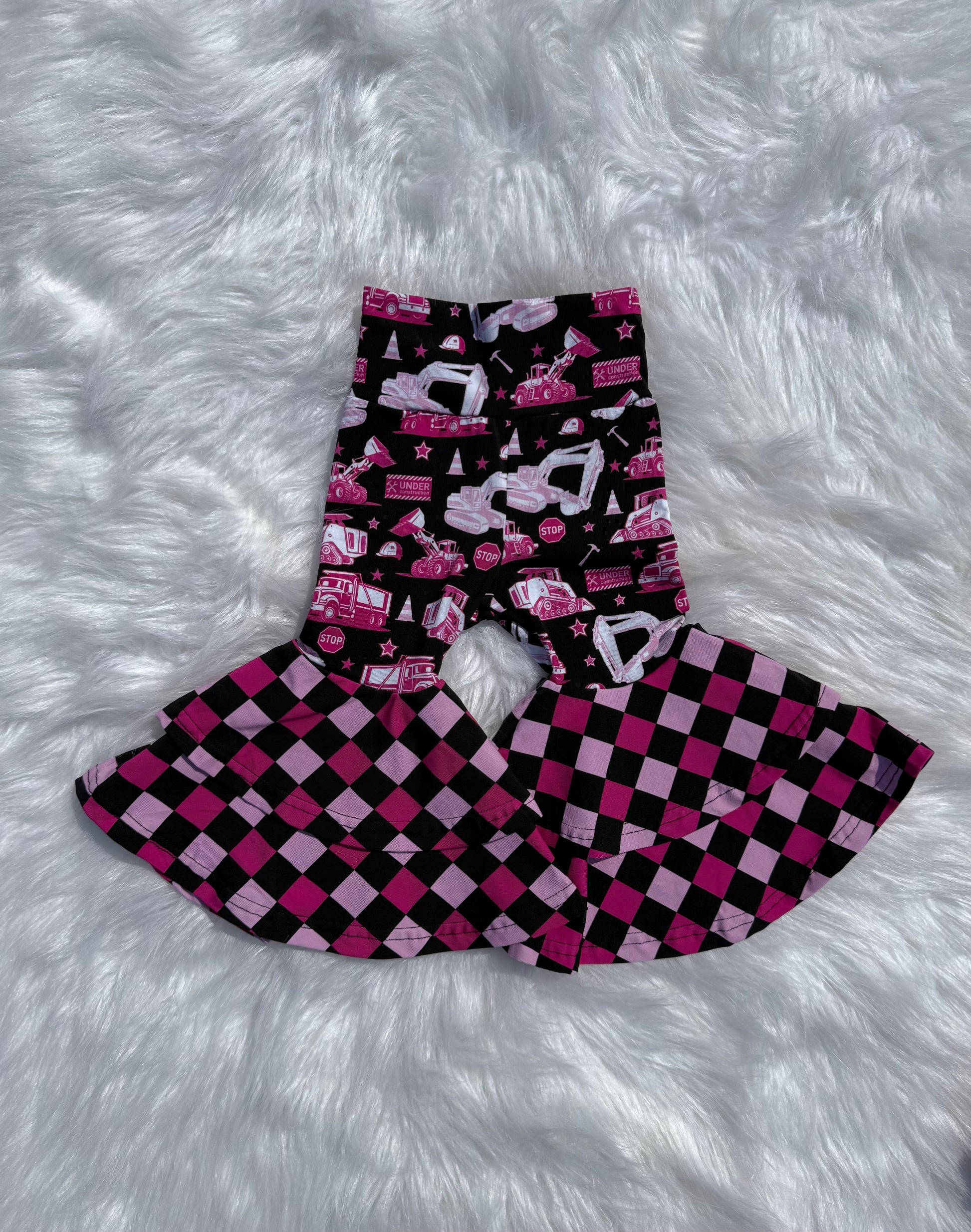Pink Under Construction Double Bell Bottoms