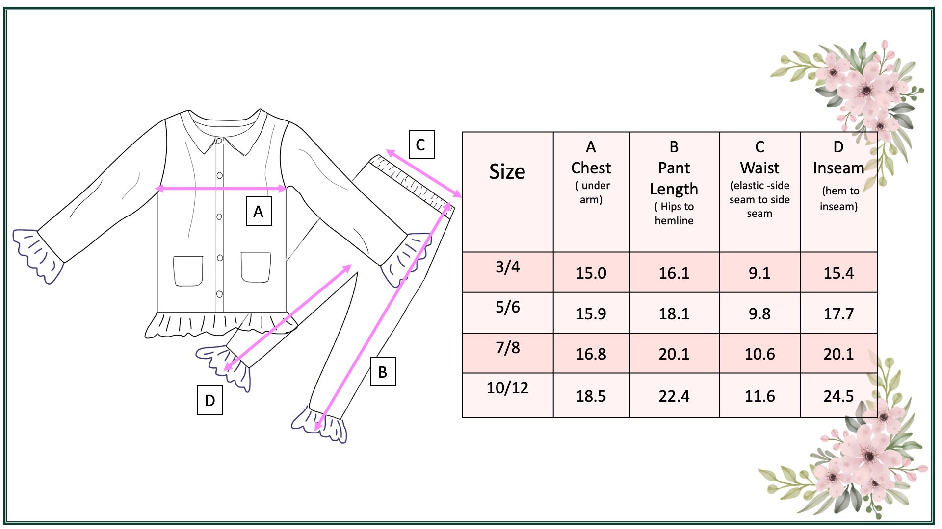 Finding the perfect fit just got easier! Our Rylee Faith Designs Size Chart is here to help you choose the right size for every outfit — from tops and dresses to bell bottoms, sets, and seasonal styles.