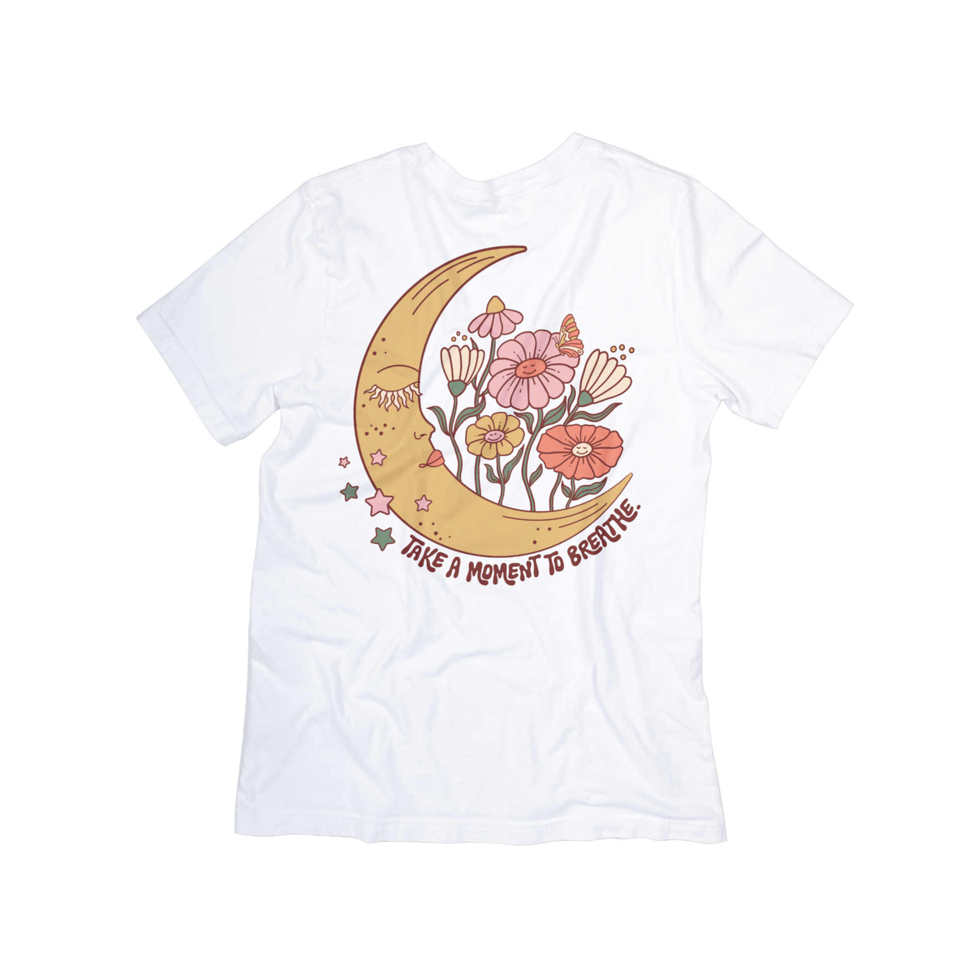 "Take a Moment to Breathe" Boho Moon Floral Tee