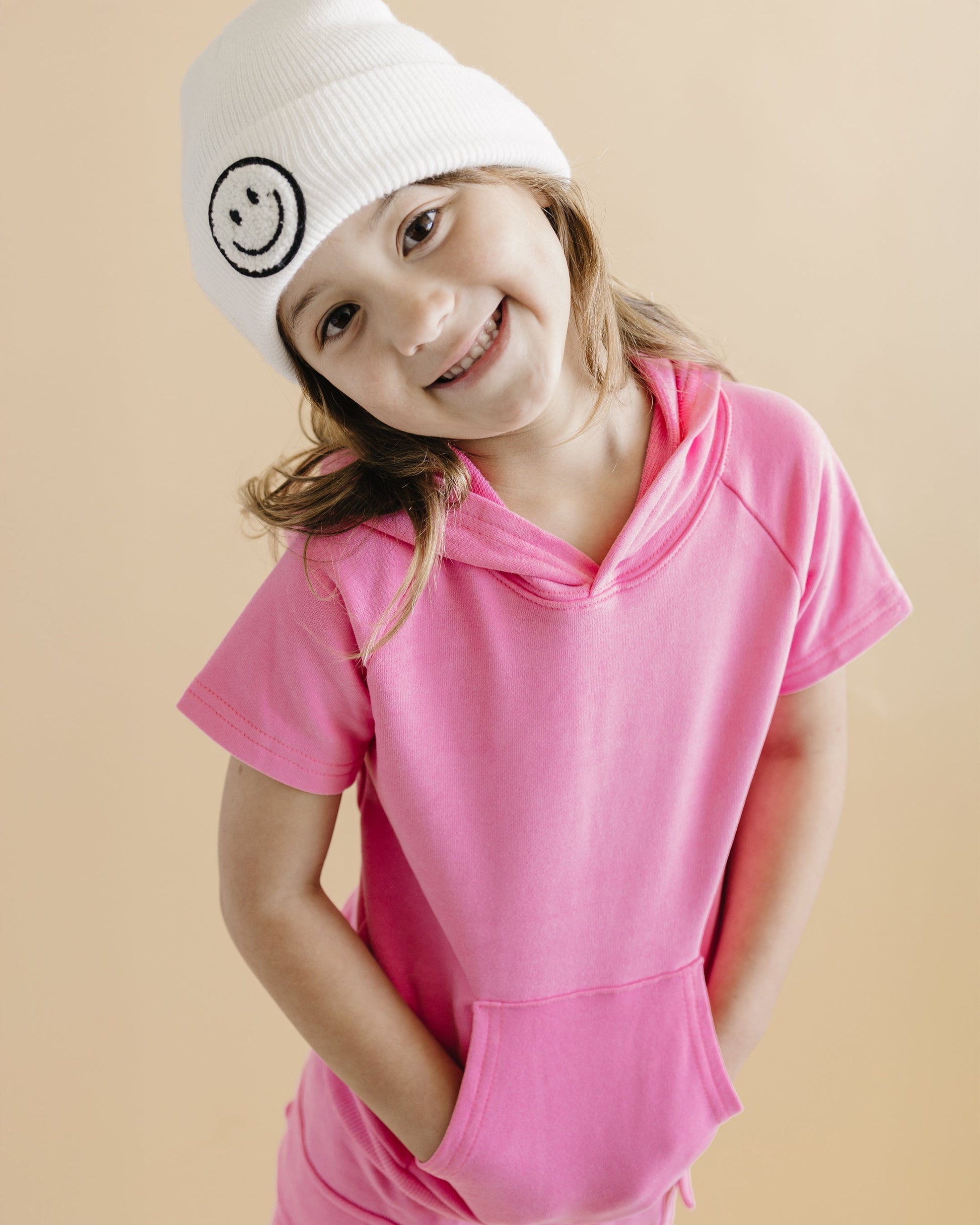 The Terry Cargo Shorts Set in Pink is the perfect blend of comfort and style, designed for both the warmer spring and summer days. Made from luxurious French terry fabric, this set is soft, breathable, and lightweight, offering a cozy fit that keeps your little one cool. The hooded top with a front pocket pairs effortlessly with the cargo-style shorts, featuring two pockets for added convenience. Available in 5 colors, this set is perfect for sibling matching, so everyone can rock their own stylish look!